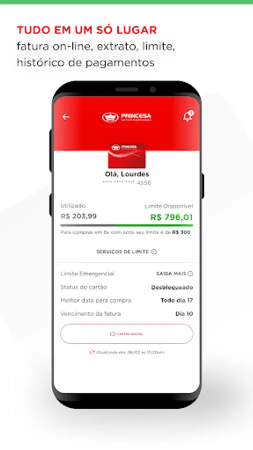 With the Princesa Supermercados Card application, you can make purchases, check your limits, see your transaction history, control your expenses, remember where they happened, and stay on top of promotions from the Eskala Network. All this in a practical and fast way.
