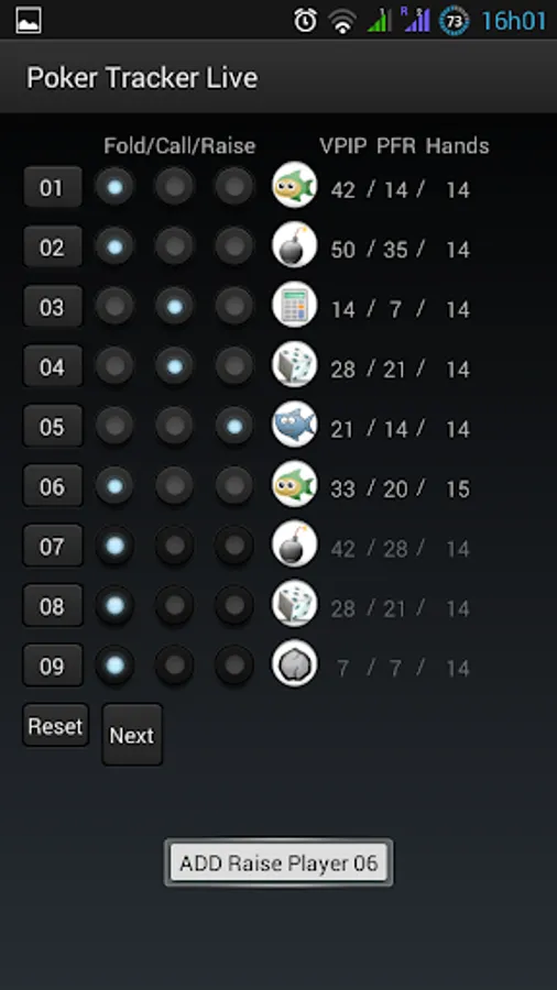 Using the application is simple, just a click to each player involved in the hand is needed.