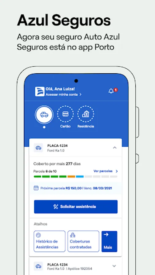 With Porto you have all your services in a single app: Auto Insurance, Travel Insurance, Home Insurance, credit card, among others.
