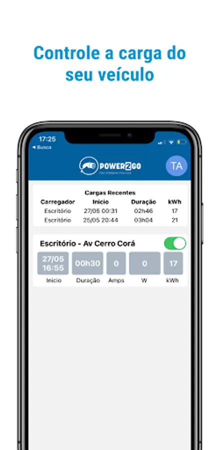 Use the Power2go app to view and control your electric vehicle's loads. By cell phone, start, track the progress and complete a charge in progress. Access the load history and find out about your electricity consumption habits.