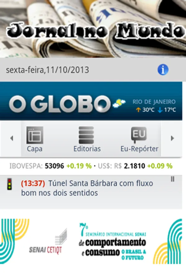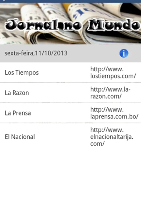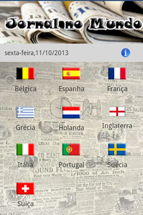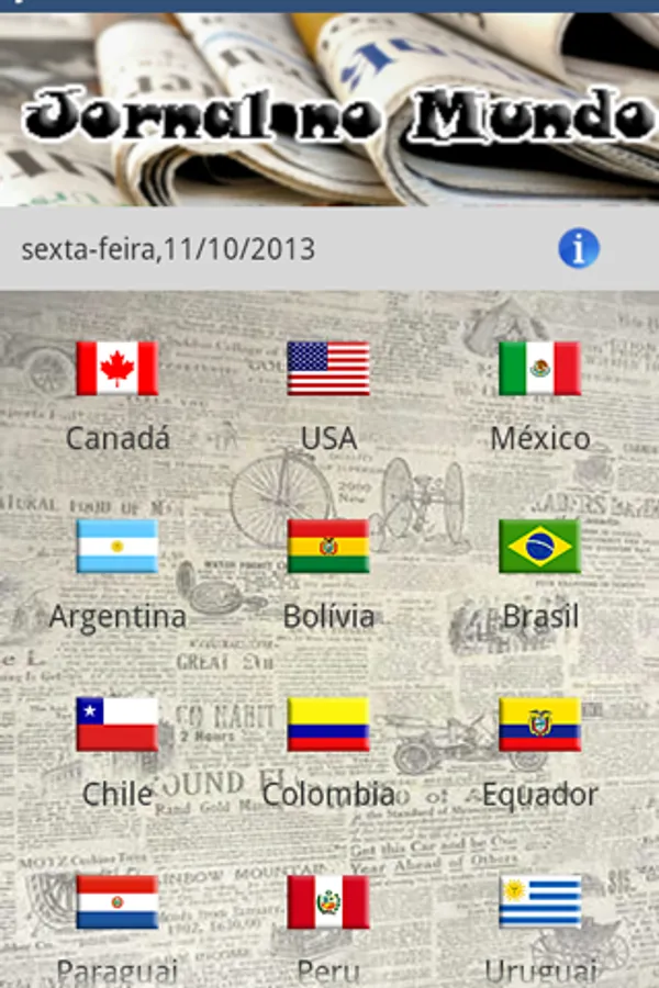The World Journal, the news in the palm of your hand. Numerous countries and their newspapers. Some newspapers already listed, CNN, Globe, Diario do Nordeste, NASA, among others. Newspapers from Canada, Mexico, England, Brazil, France, Netherlands, Switzerland, Sweden, and more.