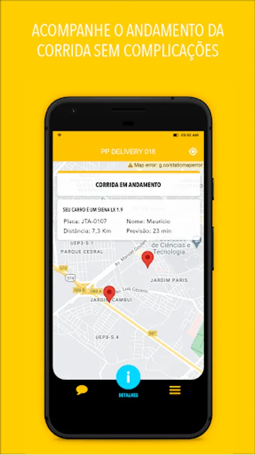 Our application allows you to call one of our motorcycle taxis and follow the vehicle's movement on the map, being notified when it is at your door.