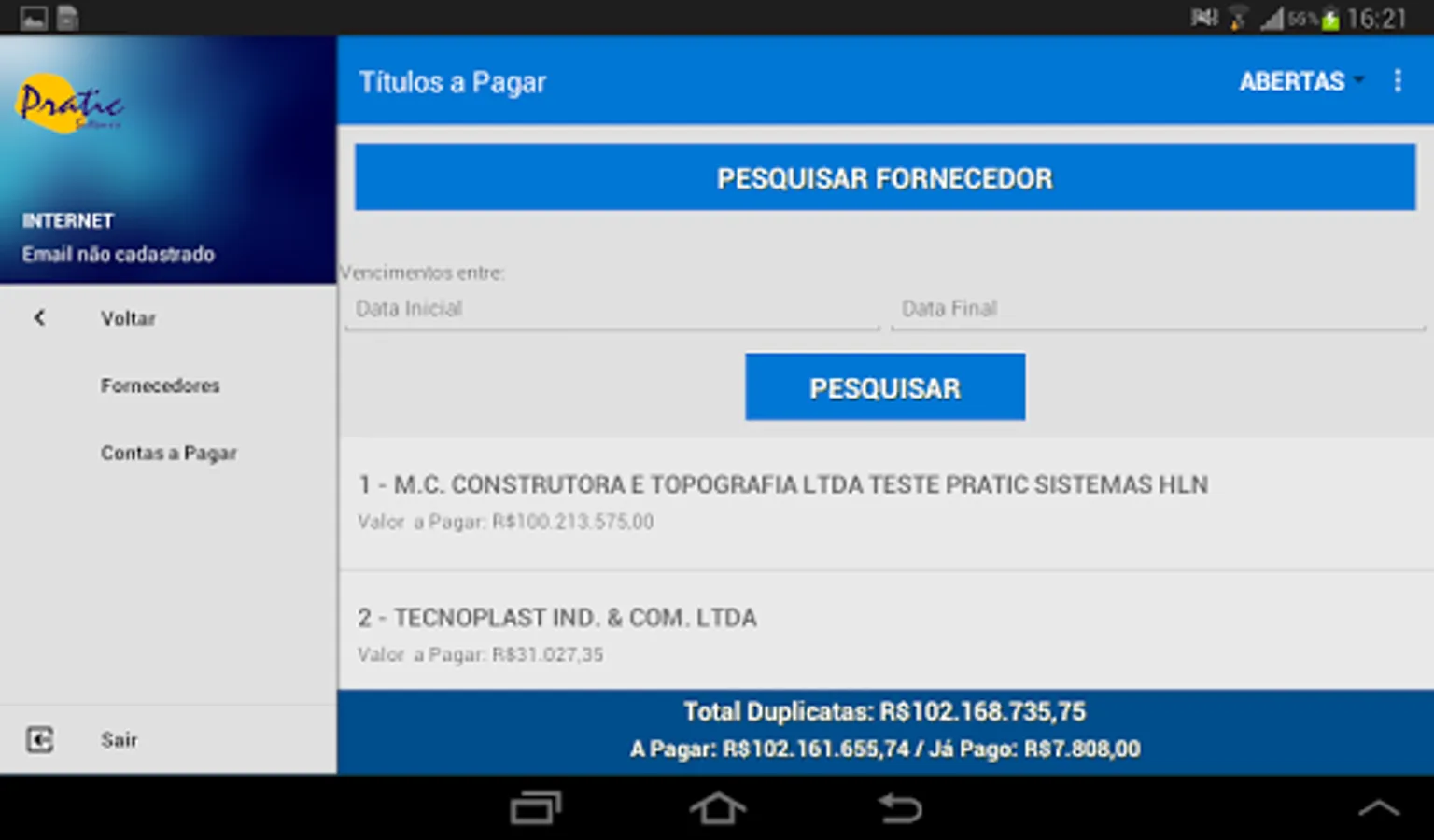 Integration application with the Pratic ERP System Management and Industrial Systems Pratic. Allowing mobiles operators have quick access to management information.