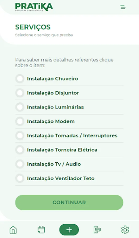 The PRÁTIKA Application was developed to meet the needs of a busy life, with it you hire services cleaning, hydraulic, electrical, cleaning after work and other conveniences for your home and condo, with just a few clicks.