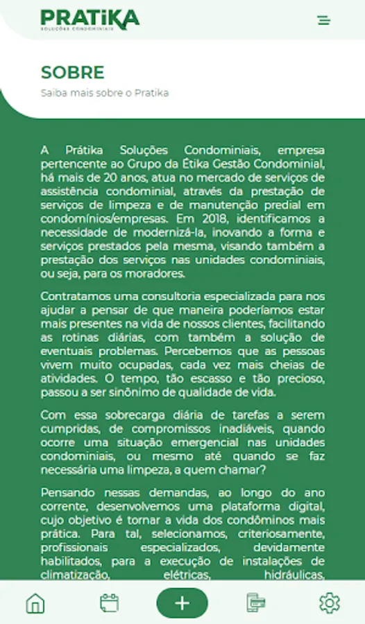 This is a product developed by Prátika Soluções Condominiais, of the Etika Condomínios Group, which has been operating in the Vale dos Sinos market for over 20 years, so you can trust.
