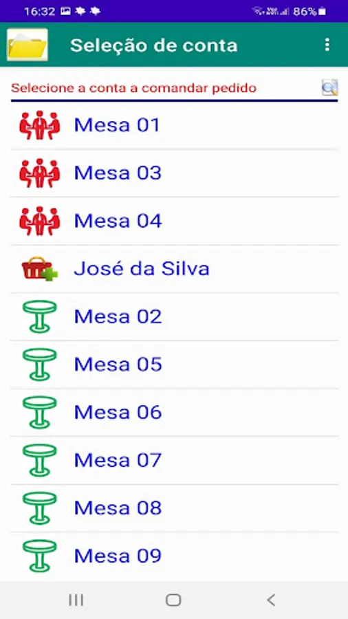 Multi-user electronic command application to control accounts of small establishments, such as bar, restaurant, cafeteria, etc.