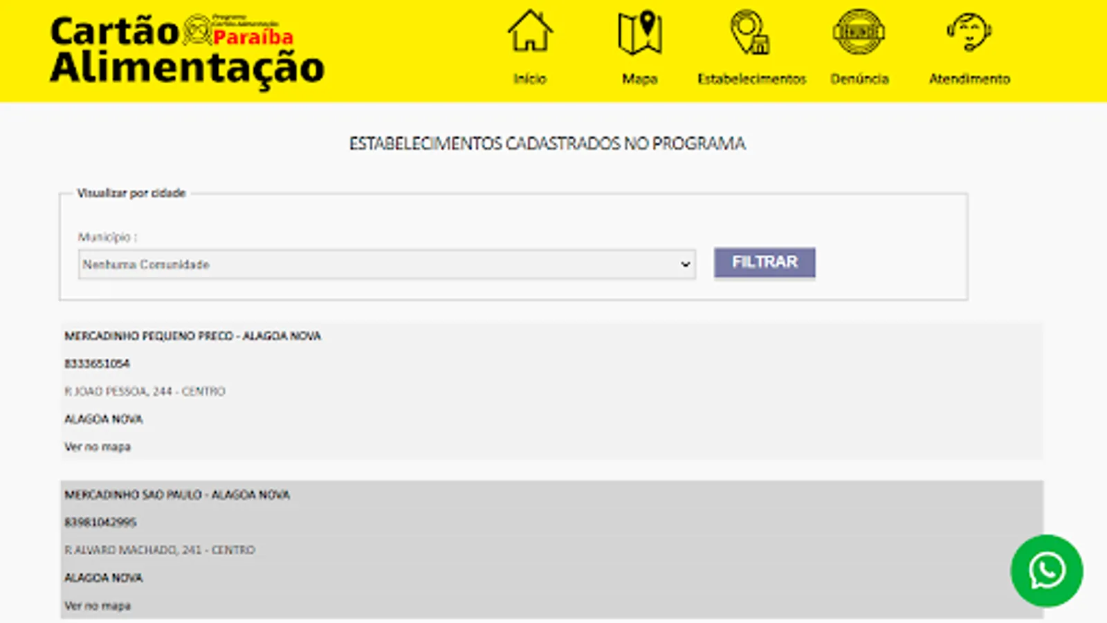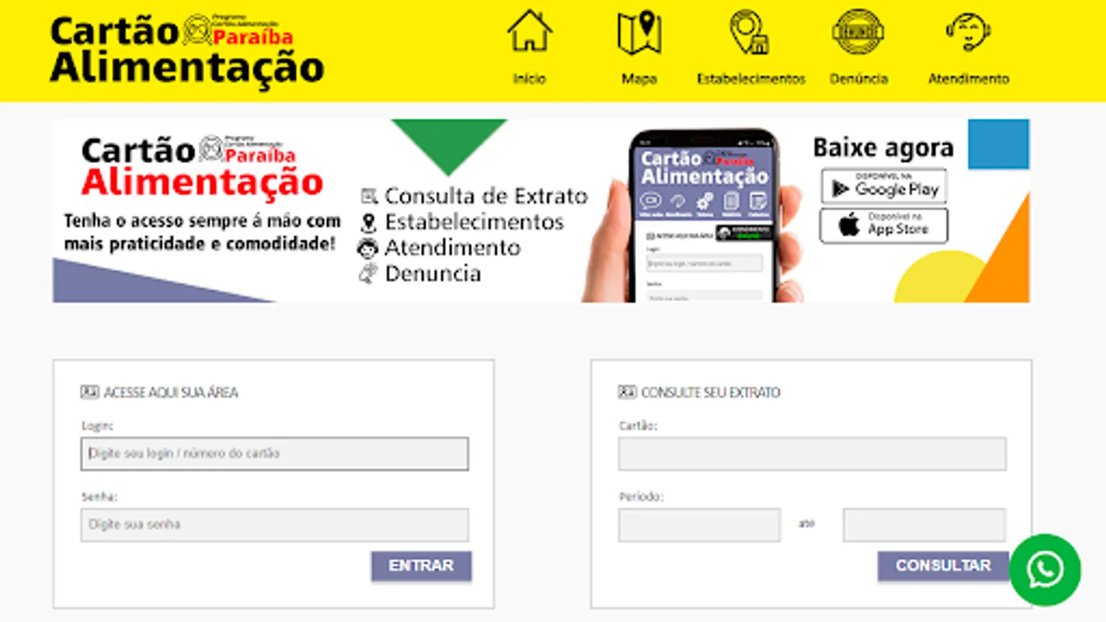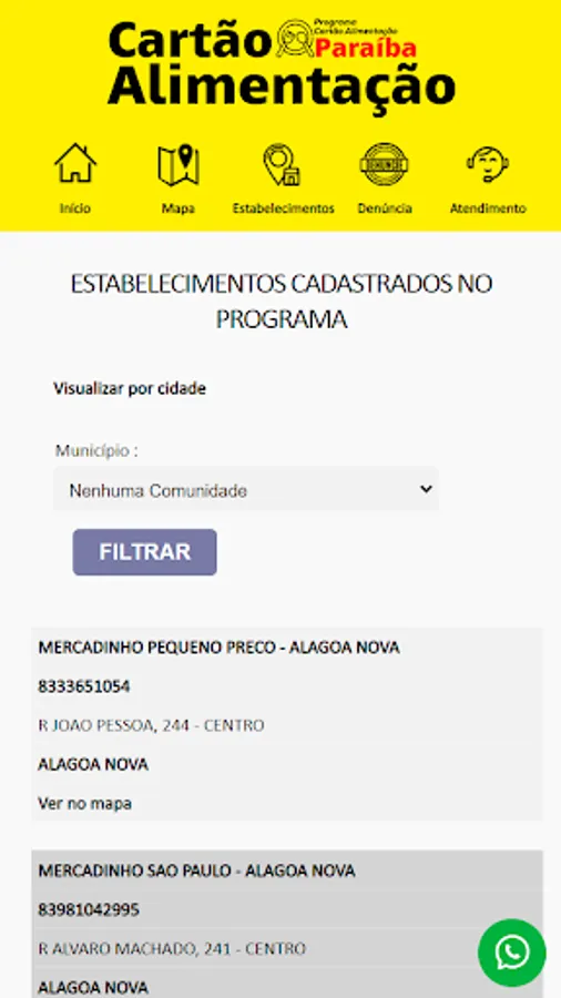 Alimentation Paraiba program application for optimized access on a mobile device.
