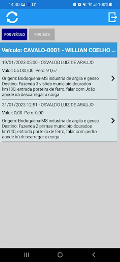 Auxiliary application for managers, where it is possible to follow the scheduled services and their occurrences.