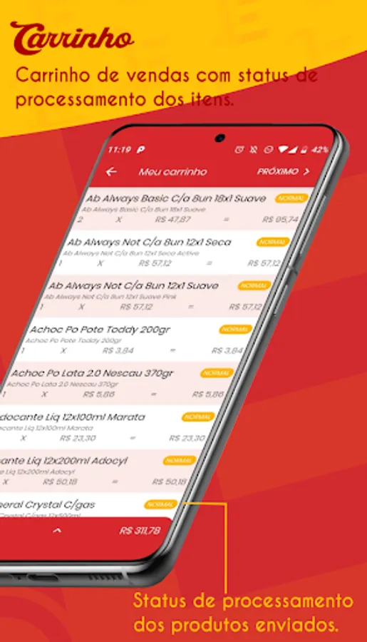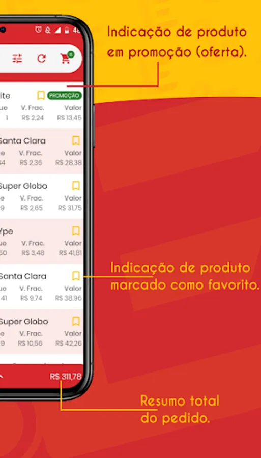 The LE Atacadista APP offers a quick and direct connection to the sales management system, speeding up the sending/receiving of orders and immediately lowering the stock of items related to the order.
