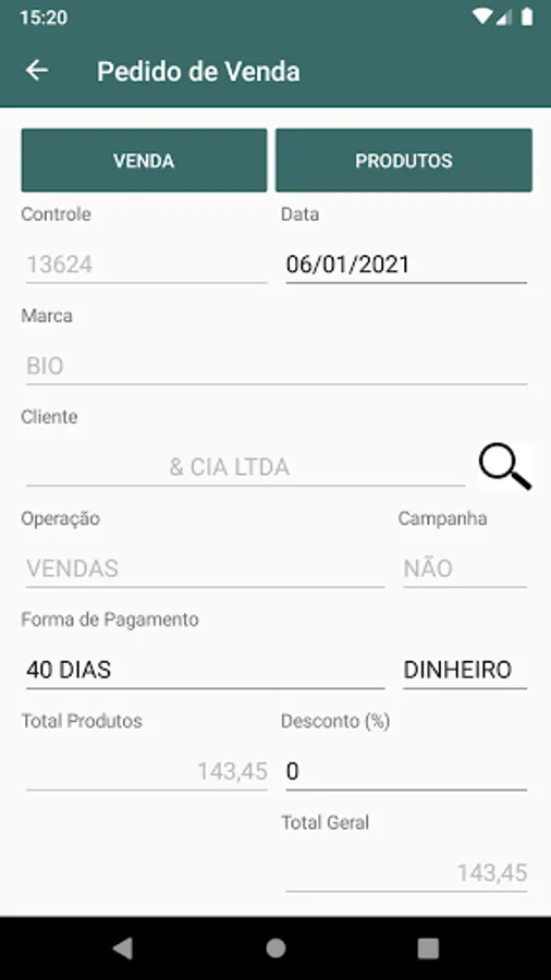 The application is a sales force for external representatives of the company Dani Cosméticos.