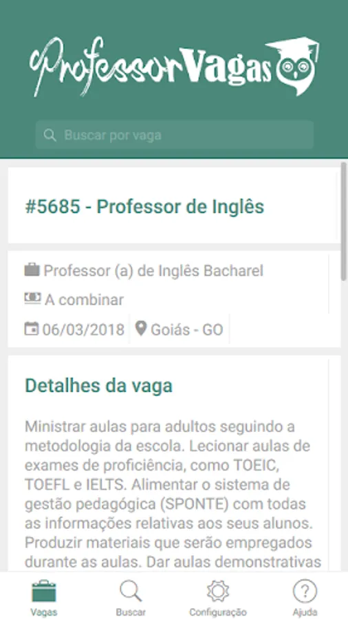 With ProfessorVagas.com app you stay in employment opportunities for the area of education throughout Brazil.