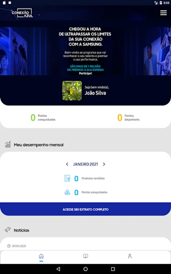 APP Conexão Azul is Samsung's Incentive program for sellers. In the program, the seller has access to all the tools, benefits and resources necessary to further increase their sales and redeem several incredible prizes.