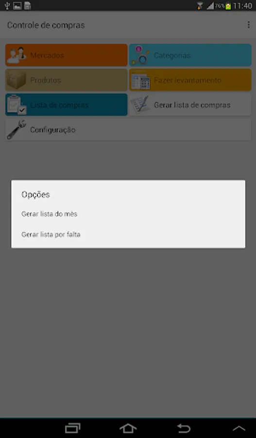 Application that allows you to control your home products, automatically generating lists of shortages and monthly lists.