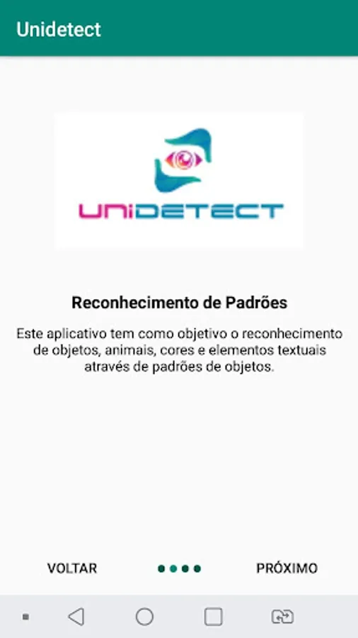 This application aims to recognize objects, animals, colors and textual elements through object patterns.