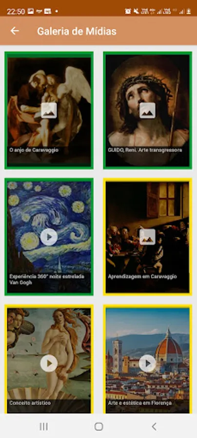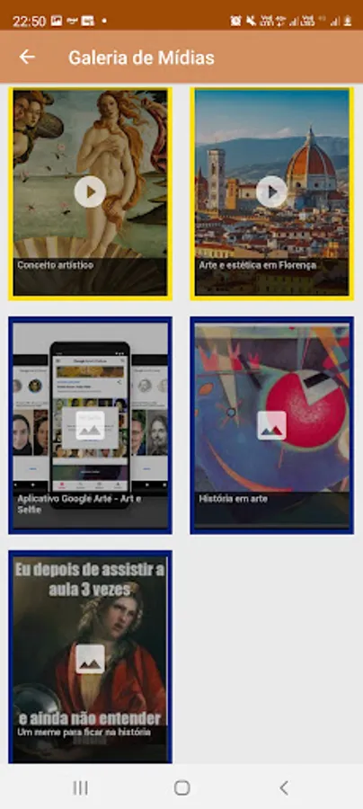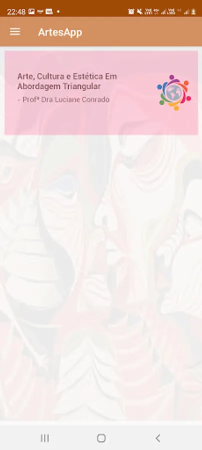 The ArtesApp application aims to provide meaningful learning for art classes as it applies the renowned triangular methodology in its technology, proposed by Ana Mae Barbosa.