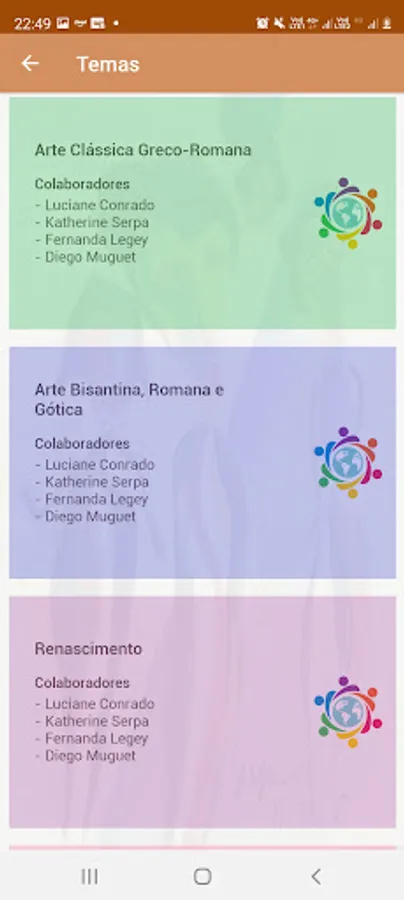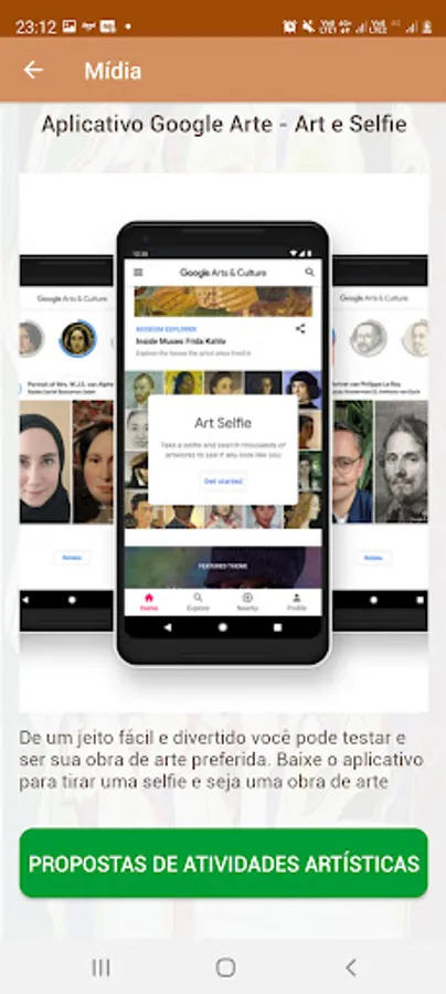 In the app, the student will be able to consume the contents (all collaboratively elaborated) through the 3 essential axes for a truly meaningful learning experience: contextualization, appreciation and artistic making.