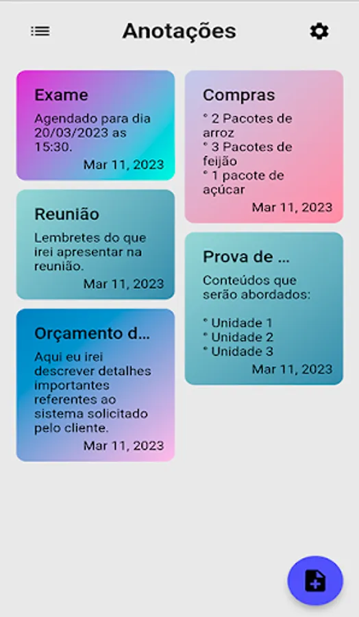 The "Annotations" application was developed to create various notes that we need on a daily basis, in the rush we end up forgetting important things easily, with the application this is easy to control, since it is just writing down everything you need in it and then enter it to view.