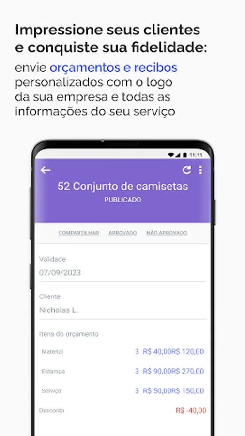 With our ERP, control the complete flow of your professional day-to-day service provision: issue budgets, generate invoices, issue service invoices (NFSe), generate collection slips, have control over accounts payable and receivable, control your customers, monitor your company's financial health through reports, integrate your bank statement from your current account with the app.