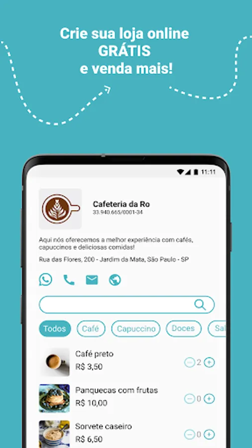 Now MEI FREE allows you to create your own online store, register products, control stock, receive orders in your application and control sales. Send your electronic catalog to your customers, advertise your products and services and receive orders directly in the app. Trading can be done directly on WhatsApp. Selling and getting paid has never been easier.