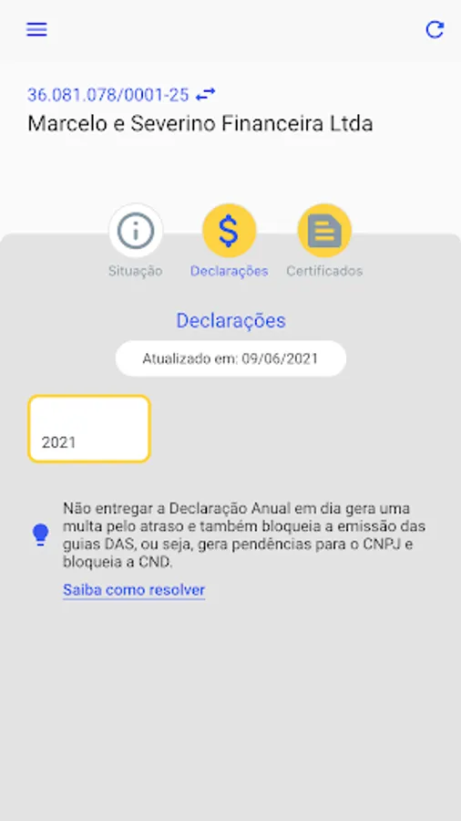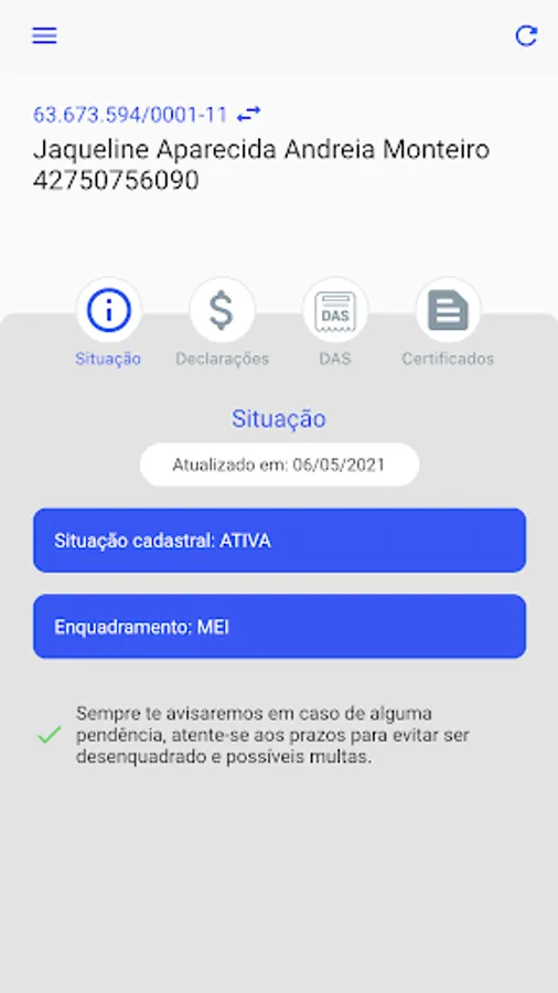Is it MEI? The CNPJ Radar also helps to monitor pending issues with the Annual MEI Declaration (DANS-SIMEI) and with the payment of DAS.