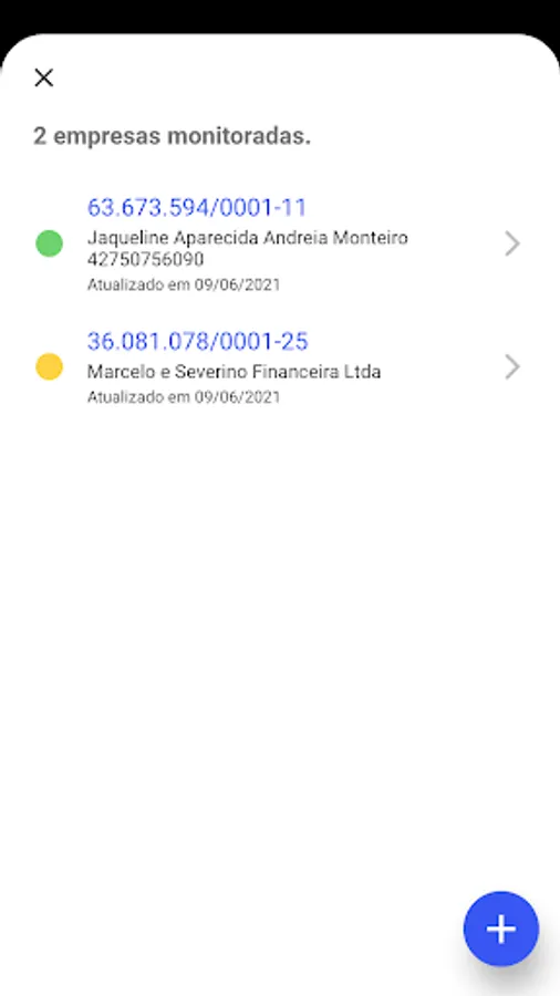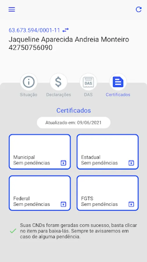 In addition to the information available in the app at any time, you will also receive a monthly report on your CNPJ status.