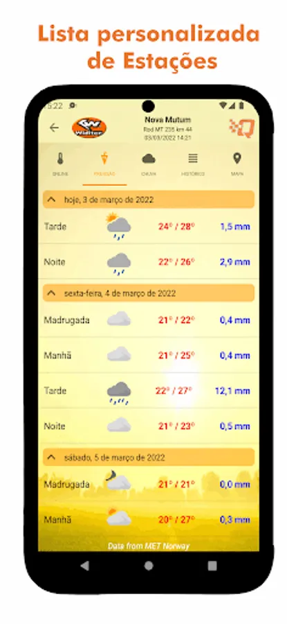 View the history of data captured by QualyAgro Stations and the weather forecast at their location.