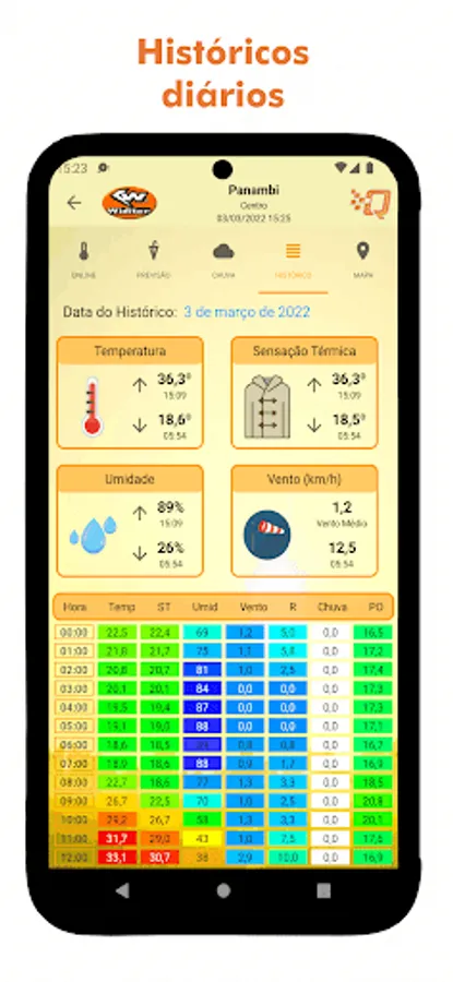 Gathered in a single application: Temperature, Thermal Sensation, Humidity, Dew Point, Wind and Rainfall data can be accessed anytime and from anywhere.
