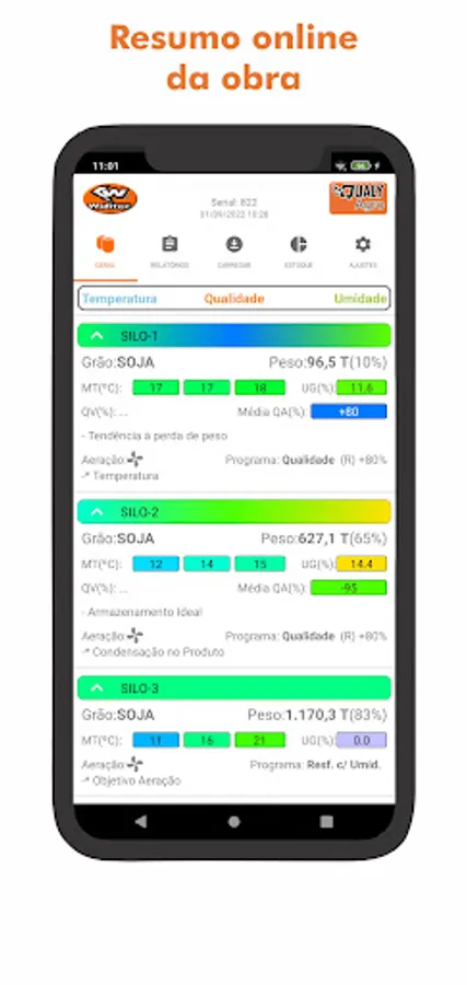 With the Supervisor Flex application, you can manage your QualyAgro thermometry and aeration equipment in real time.