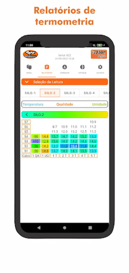 View reports and gradient images of thermometry, automatic grain stock and parameterize your storage units.