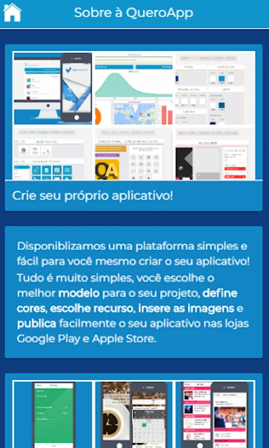 We have some layouts options, ready to speed up the creation of your application. You change the images and texts and your app is ready.