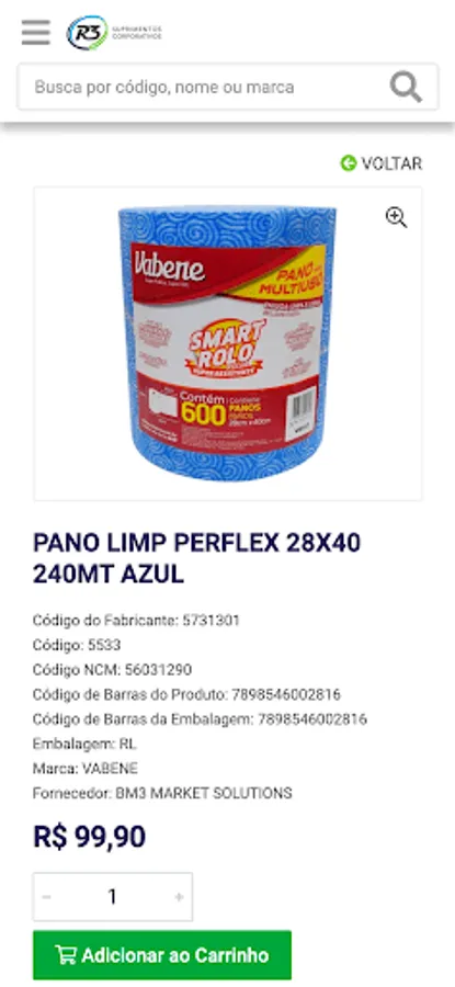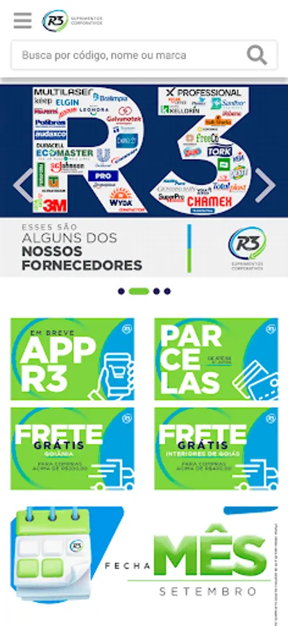 Browse the R3 Suprimentos product catalog and place your orders with total practicality.