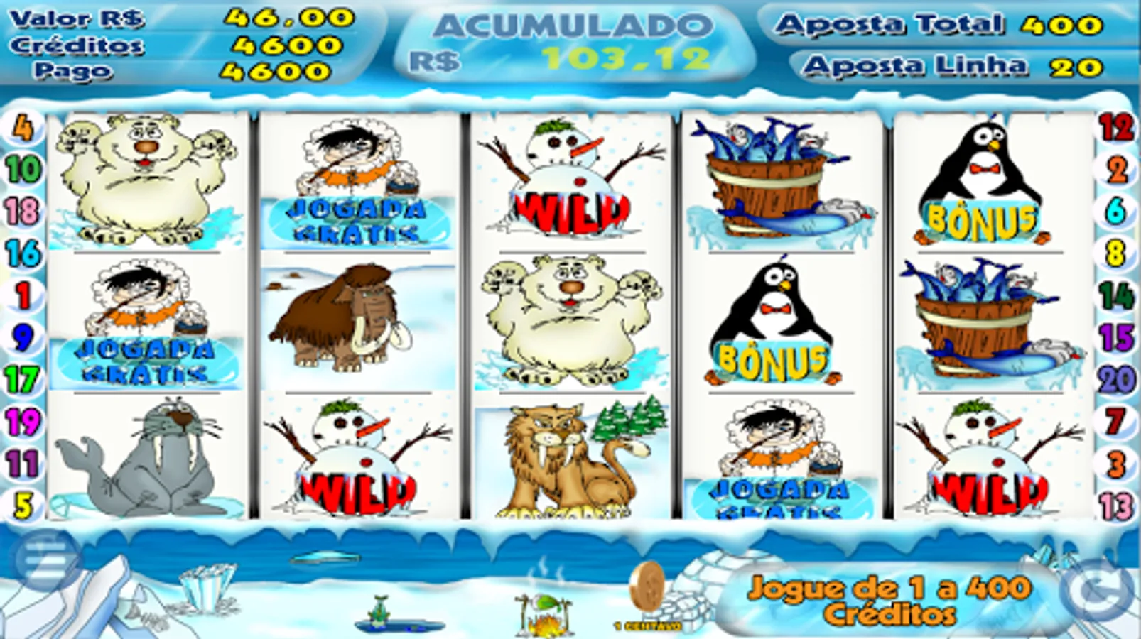 Play Free: Appearing 3 (three) or more elements "PLAY FOR FREE" in any position in the Slot Machine, you will gain free spins if one of these elements is: 2X, 3X or 5X. You'll have your winnings multiplied by the amount corresponding to the element in the Slot Machine, except for awards in the bonus screens (Bonus Bonus Refrigerator and Penguin).