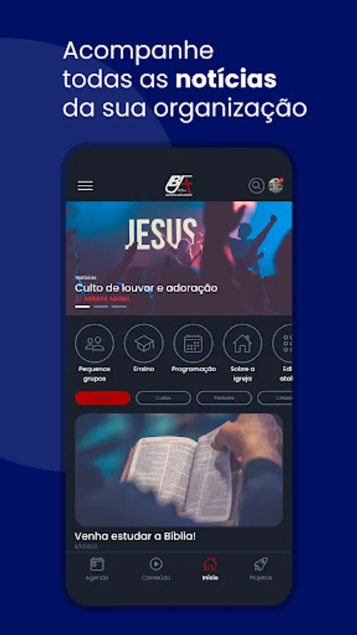Our mission is to empower each member to act in society as an agent of transformation, reaching people for salvation in Christ Jesus. Our objective and reason for existence is for the gospel of Jesus to be known to the ends of the earth through the witness of each member of the local church. Here in the IBJA App, you will have access to messages, weekly content for your edification, the possibility of being an active part of the cell church, you will have all the EBD material in your hands, you will stay on top of the entire IBJA agenda and much more.