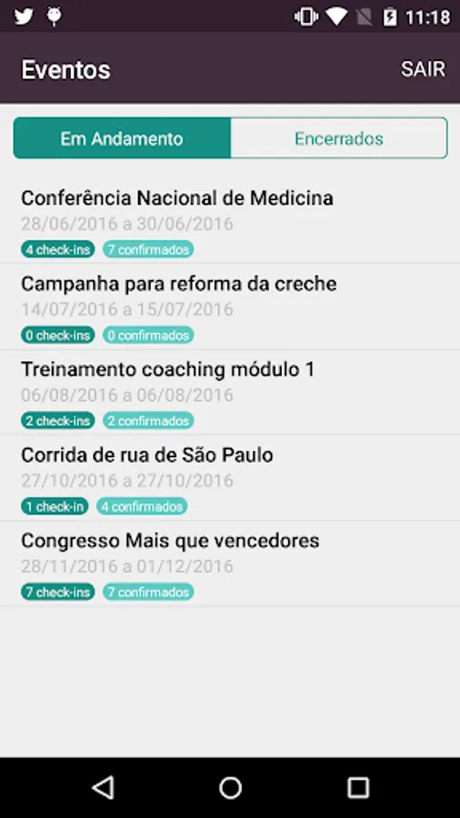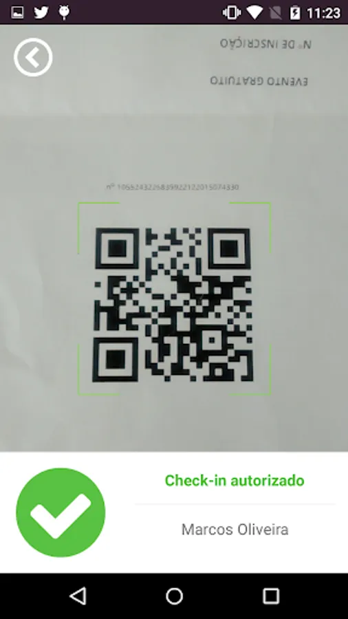 Just log in, click on the event and you're done. The application reads the QRcode of each registration and returns the result online. If the voucher has already been used, the application will also inform, avoiding duplicate entries.