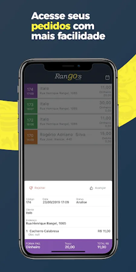 This is the app for Rango's Delivery accredited restaurants. Here you will manage orders, view the results in the dashboard and make minor changes to registration.