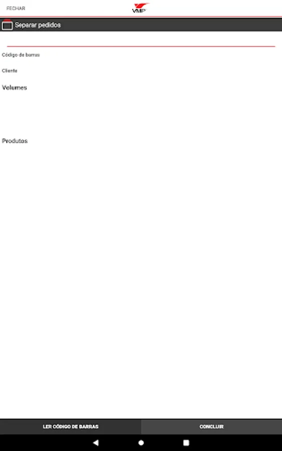 Allowing, through the barcode reader, the user to read the order, the volume and their respective products. At the end, the location and pallet where this order will be waiting for its withdrawal is selected.