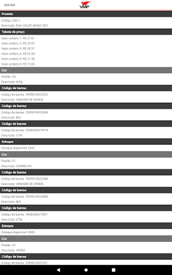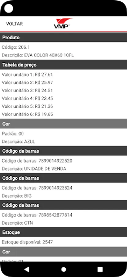 The app has a barcode reader to check product prices and add products to the sales order.