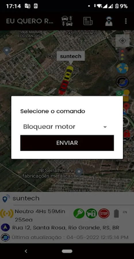 EU QUERO RG is an application linked to a platform that, through GPS and GPRS signals, interconnected with systems and map, informs the exact location of the vehicle and gives you the opportunity to block it in case of theft.