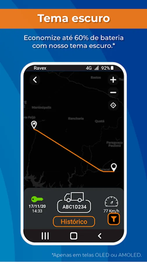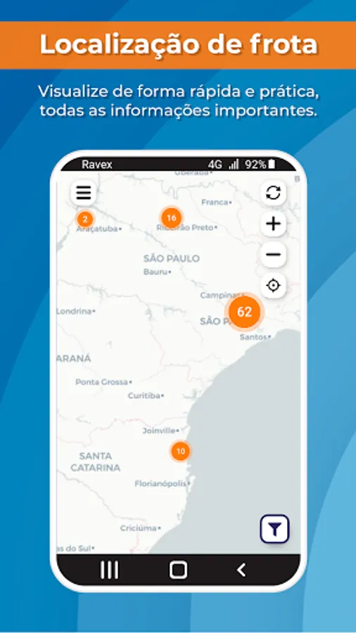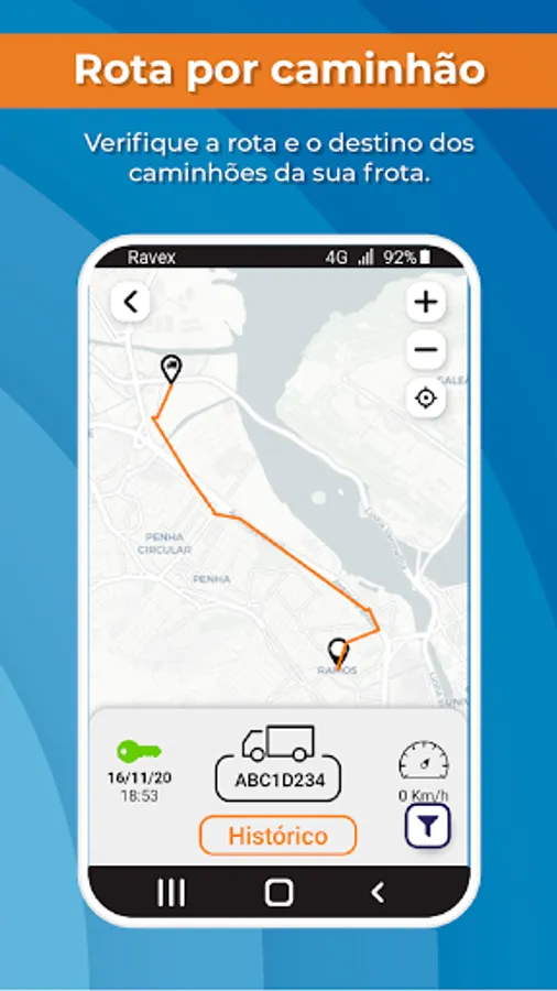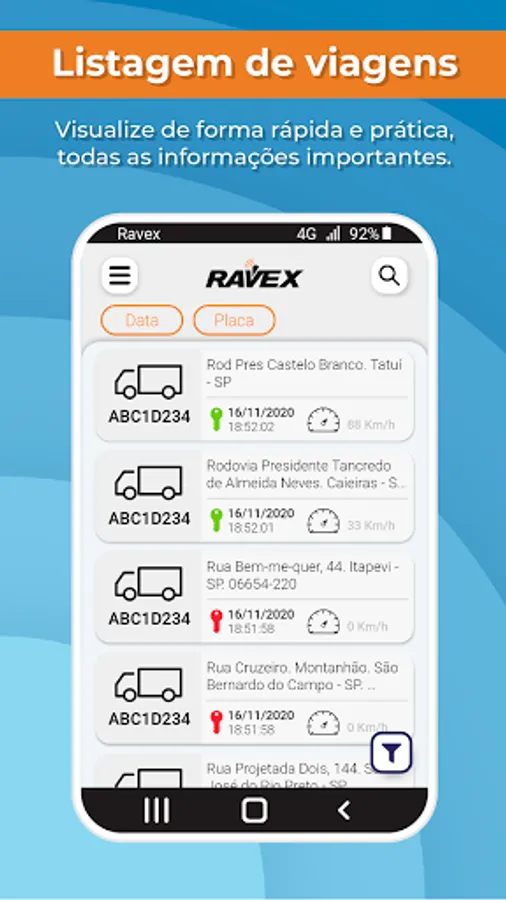 The "Ravex Localiza" application is an aid to customers of the "Ravex Logistics Management" and "Ravex Risco" system, the application allows the visualization of vehicles on the map, as well as their history of positions and alerts.