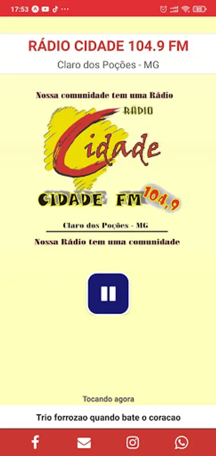 This app allows you to listen to the live programming of Rádio Cidade, 104.9 FM, from Claro dos Poções/MG, and interact with the announcers through the access links to social networks.