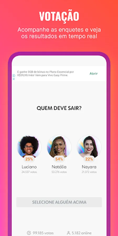 This is not the official application of the program. Don't forget to vote on the program's official website, in the second tab (with television icon).