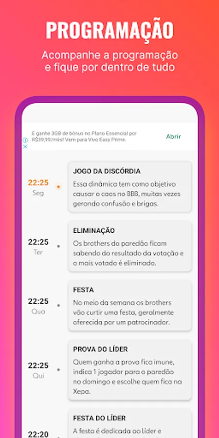 See the schedule of Big Brother Brasil and what happens each day of the week of the reality show.