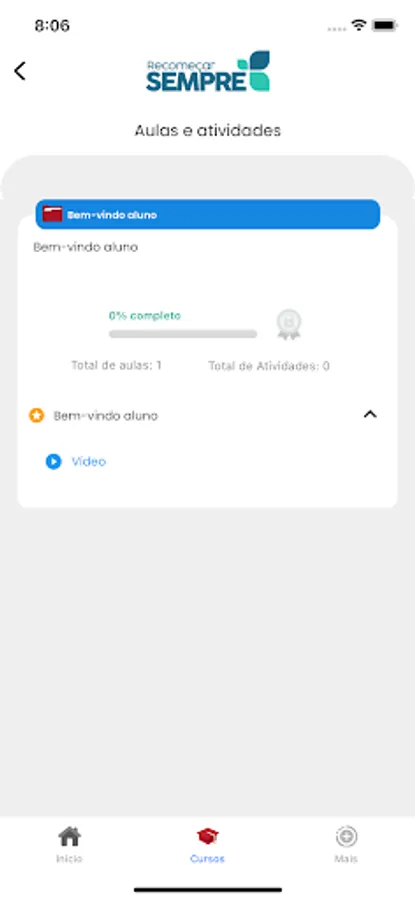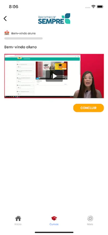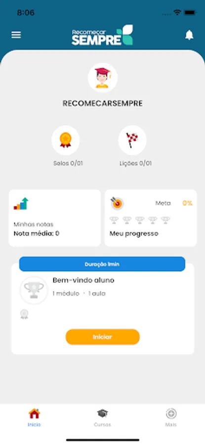 Area with Dashboard for tracking notes and modules and listing of courses. Possibility of viewing short videos and issuing certificates of completion.