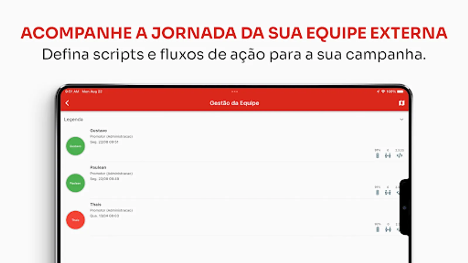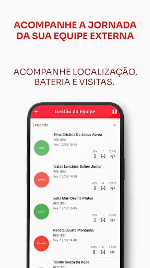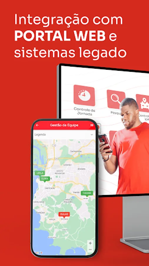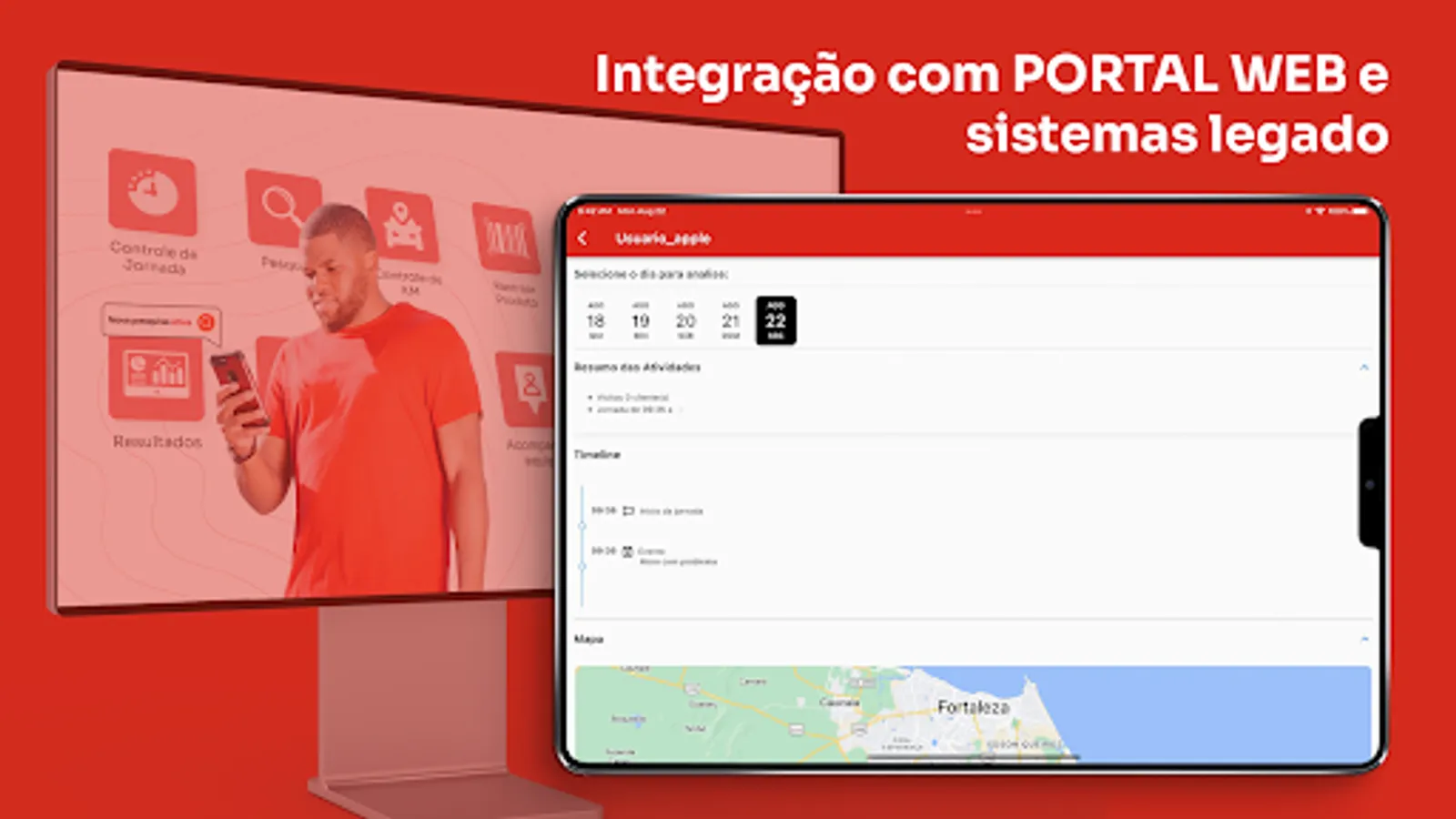 The mobile application works for external users to capture information and user location, such as: workday control, mileage control, search forms, among others.