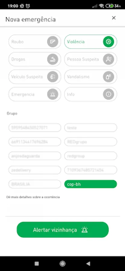 The alerts generated by the app are sent to groups and people you trust (GUARDIANS), who can help you in case of panic, or preventively when reporting a suspicious person, suspicious vehicle, among others.