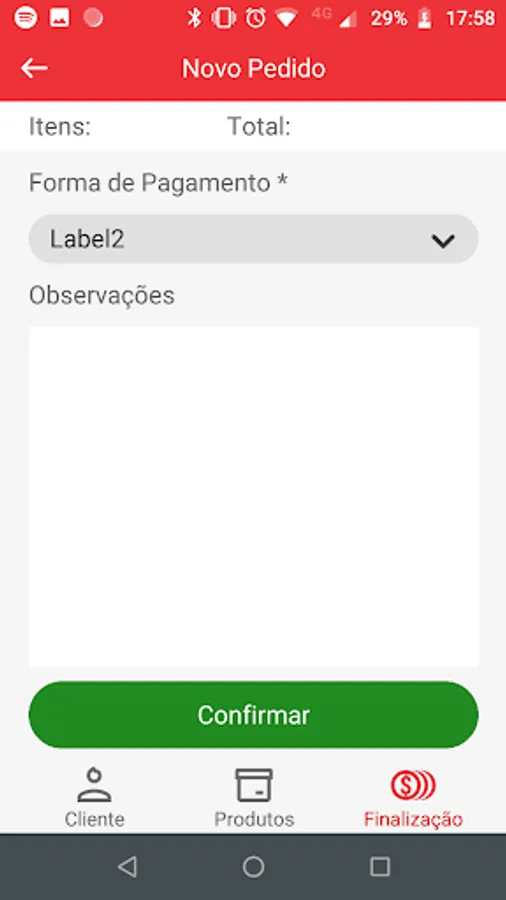 App to create and manage orders by mobile. With possibility of sending to server RedsisERP.