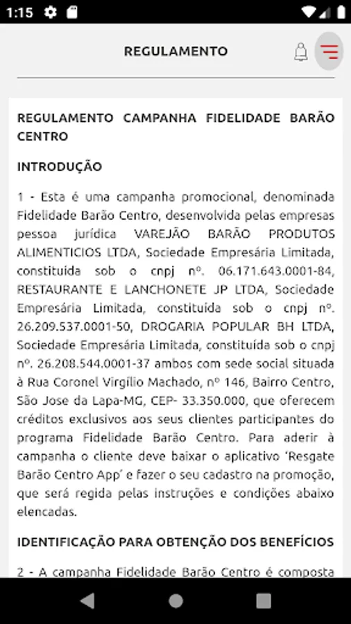 Hello, with the App Resgate Barão Centro, you can accumulate and redeem your money accumulated with your purchases, in addition to consulting our promotions and making purchases through our application.