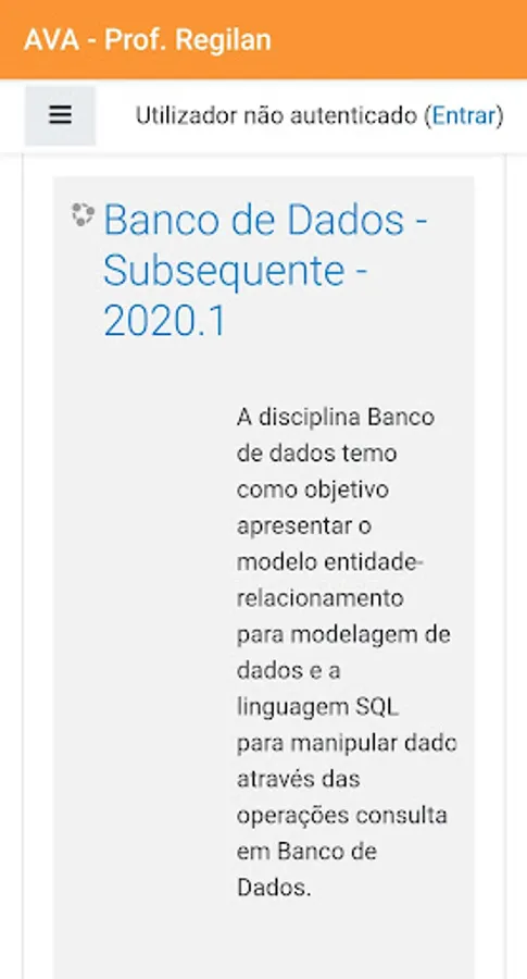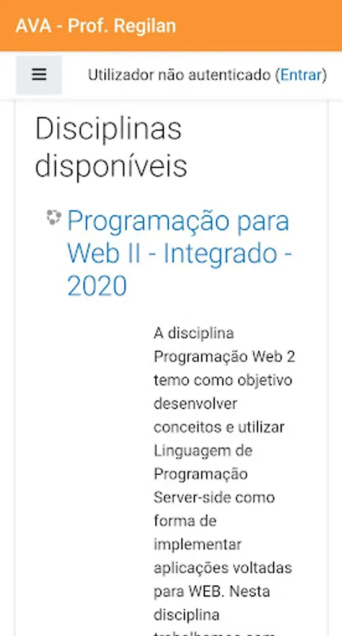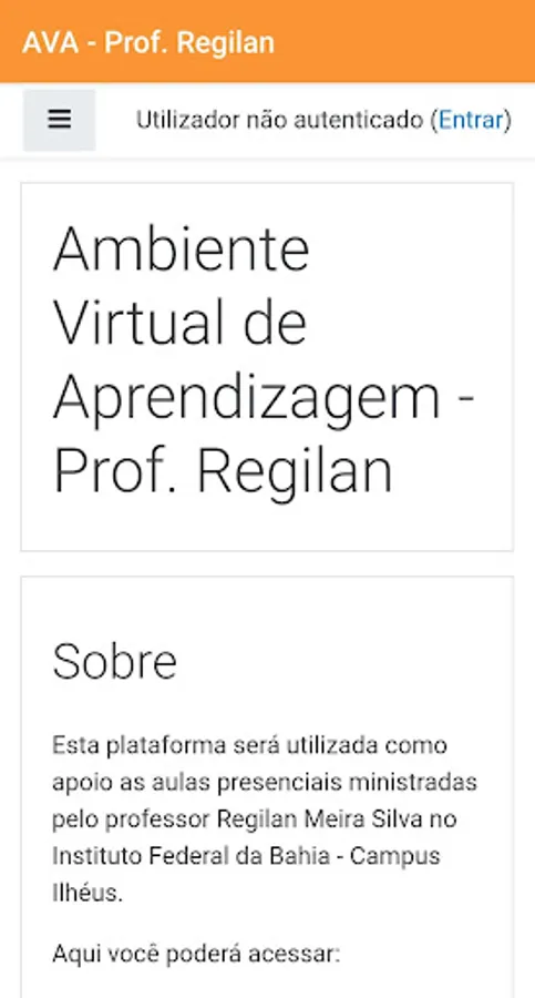 This virtual environment is used to support the face-to-face classes taught by Professor Regilan Meira Silva at the Federal Institute of Bahia - Campus Ilhéus.