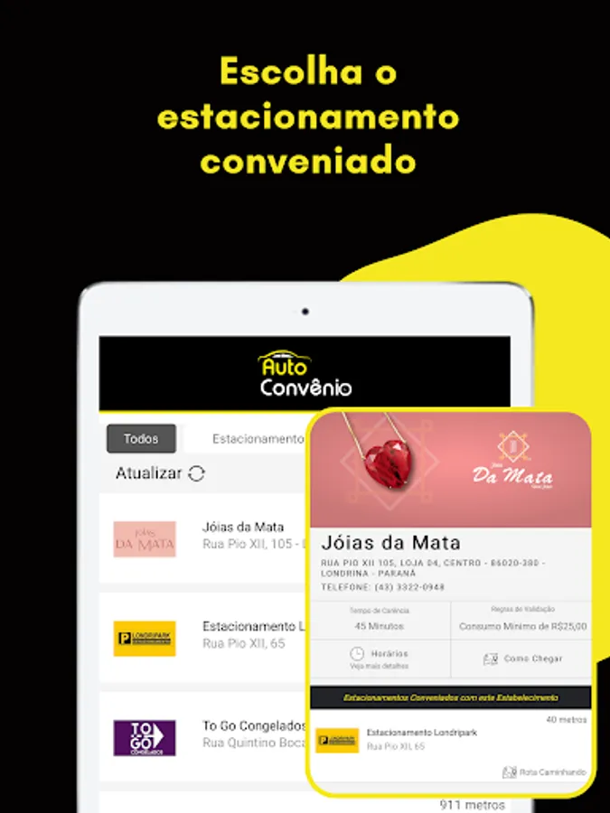 The Auto Agreement was developed to help people looking for parking lots that have agreements with commercial establishments, in order to offer convenience and economy when parking their vehicle.