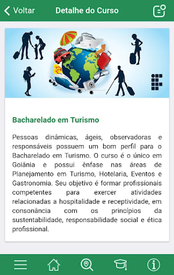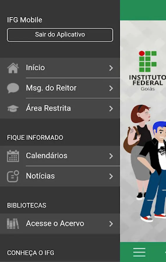 The IFG Mobile is an application that aims to present the Federal Institute of Goiás for the entire academic community, bringing together various relevant information on the institution.